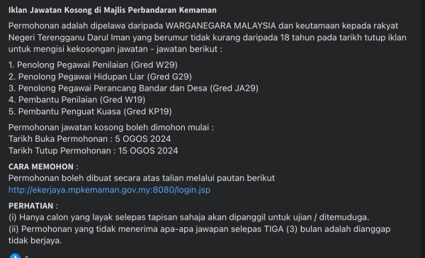 Iklan Kini Majlis Perbandaran Kemaman Like serta Ikut Facebook Kami, follow Chanel WhatsApp Jawatan Kosong & Telegram Portal SPA9 untuk capaian pantas kekosongan jawatan daripada kami sekarang. Klik Jawatan Disini