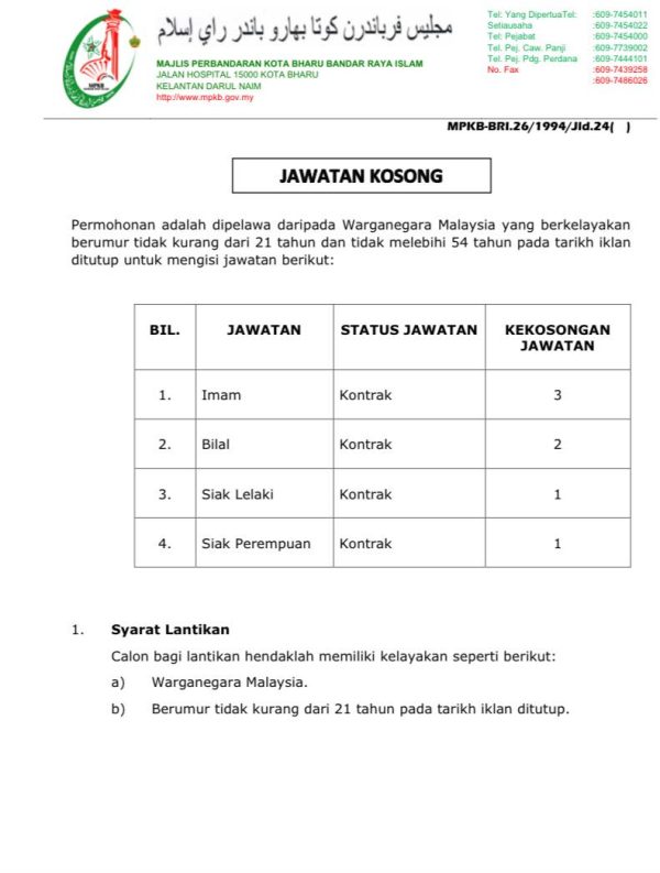 Iklan Kini Majlis Perbandaran Kota Bharu Bandar Raya Islam Like serta Ikut Facebook Kami, follow Chanel WhatsApp Jawatan Kosong & Telegram Portal SPA9 untuk capaian pantas kekosongan jawatan daripada kami sekarang. Klik Jawatan Disini