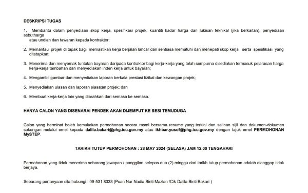 | Bil | Jawatan | Tarikh Tutup Permohonan |