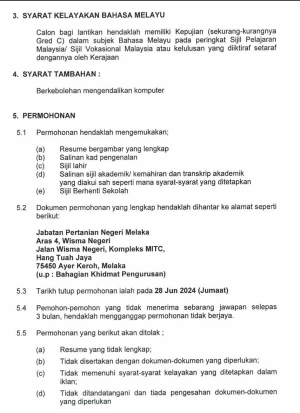 Jangan lepaskan peluang ini untuk menjadi sebahagian daripada kami di Jabatan Pertanian Negeri Melaka. Kami menanti kehadiran anda!