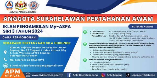 Iklan Kini Pengambilan Anggota Sukarelawan (My-ASPA) Angkatan Pertahanan Awam Malaysia (APM) Daerah Sepang