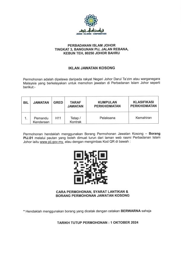 Iklan Kini Perbadanan Islam Johor Like serta Ikut Facebook Kami, follow Chanel WhatsApp Jawatan Kosong & Telegram Portal SPA9 untuk capaian pantas kekosongan jawatan daripada kami sekarang. Klik Jawatan Disini