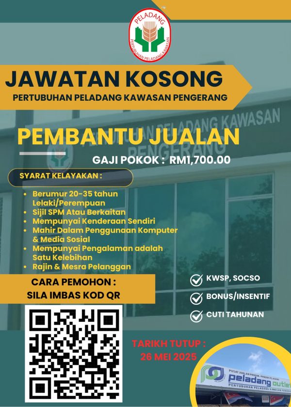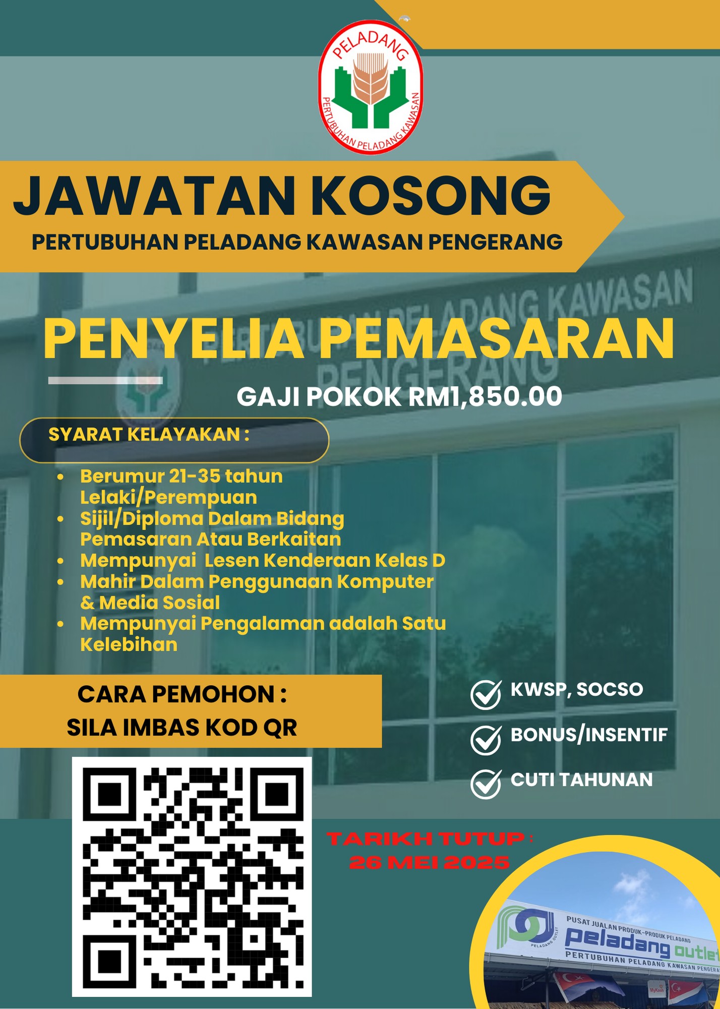 Iklan Kini Pertubuhan Peladang Kawasan Pengerang Like serta Ikut Facebook Kami, follow Chanel WhatsApp Jawatan Kosong & Telegram Portal SPA9 untuk capaian pantas kekosongan jawatan daripada kami sekarang. Klik Jawatan Disini