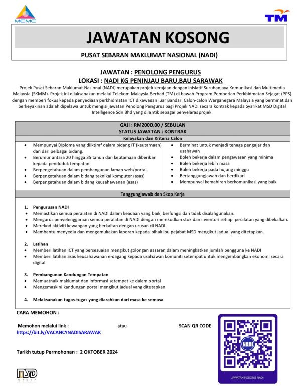Iklan Kini Pusat Sebaran Maklumat Nasional Like serta Ikut Facebook Kami, follow Chanel WhatsApp Jawatan Kosong & Telegram Portal SPA9 untuk capaian pantas kekosongan jawatan daripada kami sekarang.