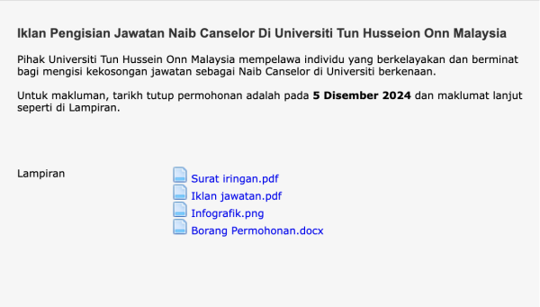 IKlan Kini Universiti Tun Husseion Onn Malaysia Like serta Ikut Facebook Kami, follow Chanel WhatsApp Jawatan Kosong & Telegram Portal SPA9 untuk capaian pantas kekosongan jawatan daripada kami sekarang. Klik Iklan Jawatan