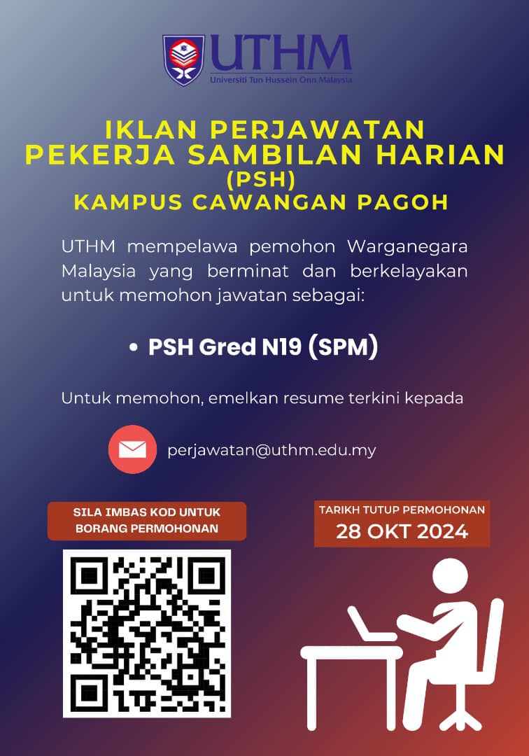 Iklan Kini UTHM Kampus Cawangan Pagoh Like serta Ikut Facebook Kami, follow Chanel WhatsApp Jawatan Kosong & Telegram Portal SPA9 untuk capaian pantas kekosongan jawatan daripada kami sekarang. Klik Jawatan Disini