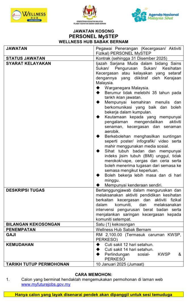 Iklan Kini Wellness Hub Sabak Bernam Like serta Ikut Facebook Kami, follow Chanel WhatsApp Jawatan Kosong & Telegram Portal SPA9 untuk capaian pantas kekosongan jawatan daripada kami sekarang. Klik Jawatan Disini