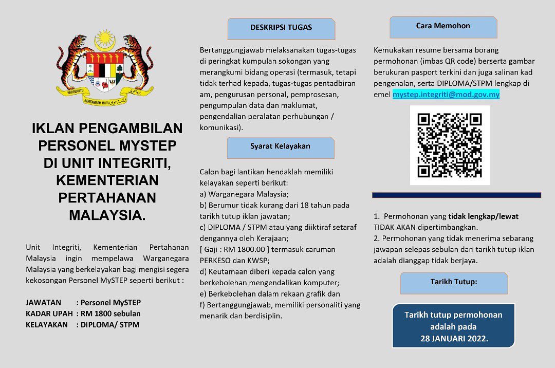 Jawatan Kosong Kementerian Pertahanan Malaysia Like serta Ikut Facebook Kami, follow Chanel WhatsApp Jawatan Kosong & Telegram Portal SPA9 untuk capaian pantas kekosongan jawatan daripada kami sekarang.