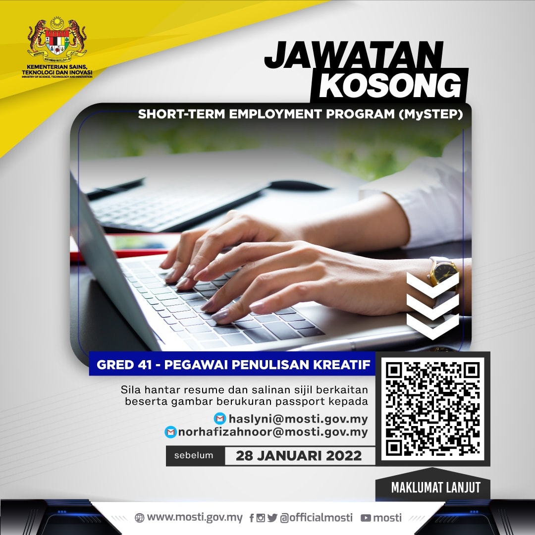Iklan Jawatan Kementerian Sains, Teknologi Dan Inovasi (MOSTI) Like serta Ikut Facebook Kami, follow Chanel WhatsApp Jawatan Kosong & Telegram Portal SPA9 untuk capaian pantas kekosongan jawatan daripada kami sekarang.