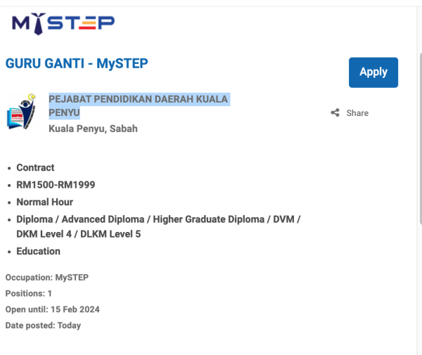 Iklan Pejabat Pendidikan Daerah Kuala Penyu Like serta Ikut Facebook Kami, follow Chanel WhatsApp Jawatan Kosong & Telegram Portal SPA9 untuk capaian pantas kekosongan jawatan daripada kami sekarang.