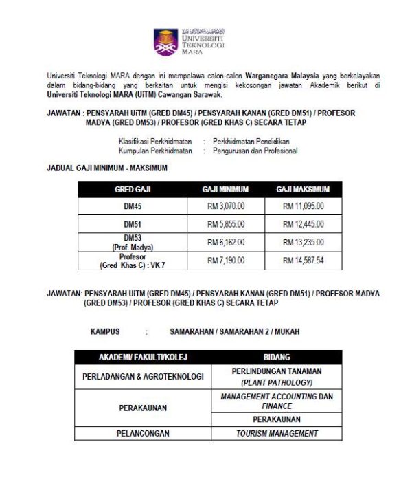 Iklan Pensyarah Jawatan Kosong Terkini di Universiti Teknologi MARA (UiTM) Like serta Ikut Facebook Kami, follow Chanel WhatsApp Jawatan Kosong & Telegram Portal SPA9 untuk capaian pantas kekosongan jawatan daripada kami sekarang.