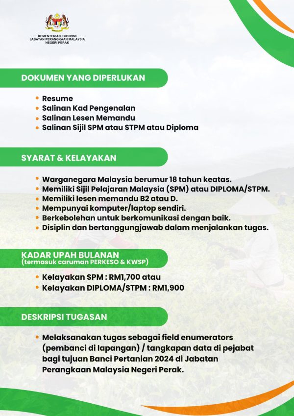 Iklan Personel Mystep Di Jabatan Perangkaan Malaysia Negeri Perak Like serta Ikut Facebook Kami, follow Chanel WhatsApp Jawatan Kosong & Telegram Portal SPA9 untuk capaian pantas kekosongan jawatan daripada kami sekarang.