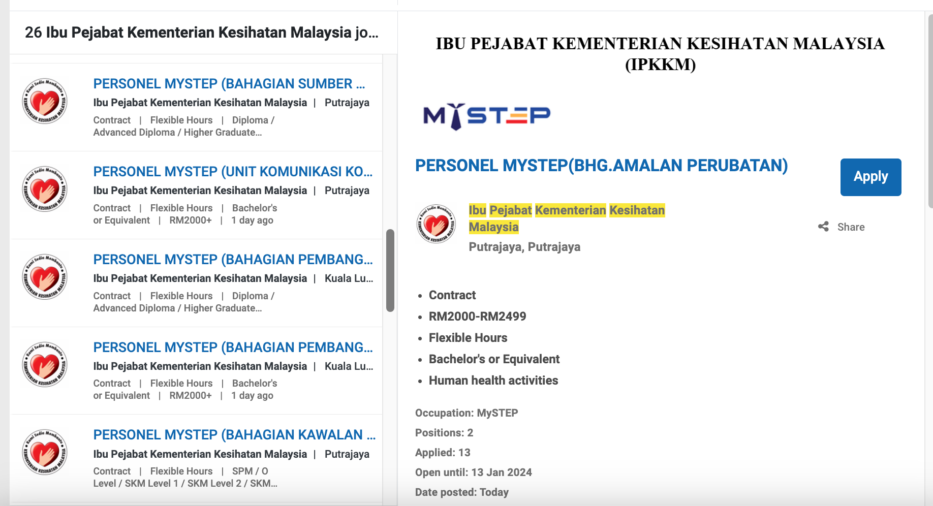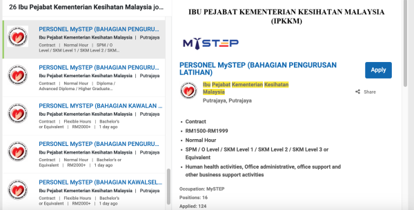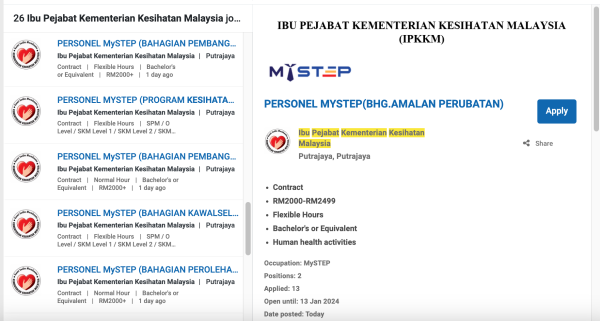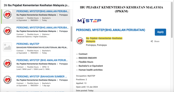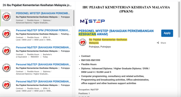 Iklan Personel Mystep Jawatan Kosong Kementerian Kesihatan Malaysia (KKM) Like serta Ikut Facebook Kami, follow Chanel WhatsApp Jawatan Kosong & Telegram Portal SPA9 untuk capaian pantas kekosongan jawatan daripada kami sekarang. Sila Mohon Jawatan Di Myfuturejobs