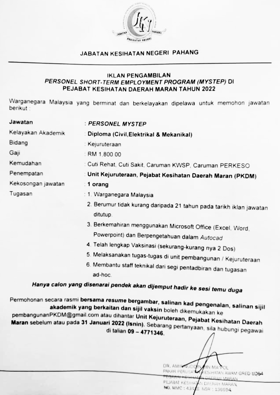 Iklan Jawatan Pejabat Kesihatan Daerah Maran Like serta Ikut Facebook Kami, follow Chanel WhatsApp Jawatan Kosong & Telegram Portal SPA9 untuk capaian pantas kekosongan jawatan daripada kami sekarang.