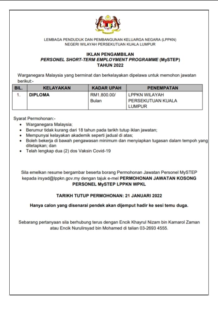 Iklan Jawatan Lembaga Penduduk Dan Pembangunan Keluarga Negara (LPPKN) Like serta Ikut Facebook Kami, follow Chanel WhatsApp Jawatan Kosong & Telegram Portal SPA9 untuk capaian pantas kekosongan jawatan daripada kami sekarang.