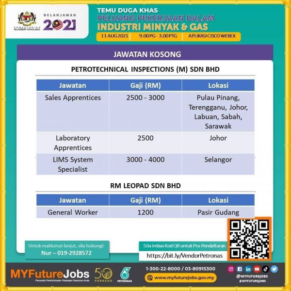 Iklan Temuduga Khas Dalam Industri Minyak Dan Gas Like serta Ikut Facebook Kami, follow Chanel WhatsApp Jawatan Kosong & Telegram Portal SPA9 untuk capaian pantas kekosongan jawatan daripada kami sekarang.