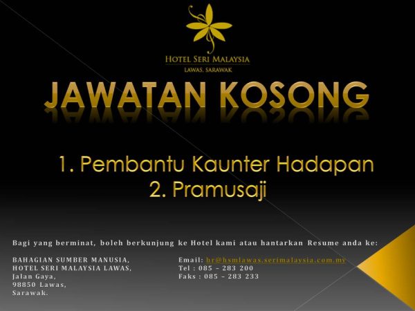 Iklan Terkini Hotel Seri Malaysia Lawas Like serta Ikut Facebook Kami, follow Chanel WhatsApp Jawatan Kosong & Telegram Portal SPA9 untuk capaian pantas kekosongan jawatan daripada kami sekarang.