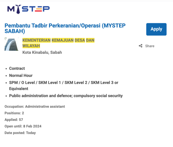 Iklan Terkini Jawatan Kementerian Kemajuan Desa Dan Wilayah Like serta Ikut Facebook Kami, follow Chanel WhatsApp Jawatan Kosong & Telegram Portal SPA9 untuk capaian pantas kekosongan jawatan daripada kami sekarang.