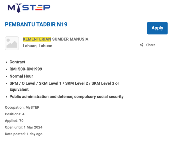 Iklan Terkini Jawatan Kementerian Sumber Manusia Like serta Ikut Facebook Kami, follow Chanel WhatsApp Jawatan Kosong & Telegram Portal SPA9 untuk capaian pantas kekosongan jawatan daripada kami sekarang.