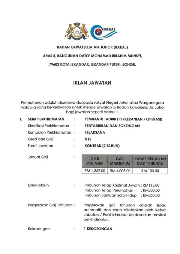 Iklan Terkini Jawatan Kosong Badan Kawalselia Air Johor Like serta Ikut Facebook Kami, follow Chanel WhatsApp Jawatan Kosong & Telegram Portal SPA9 untuk capaian pantas kekosongan jawatan daripada kami sekarang. Klik Jawatan Disini