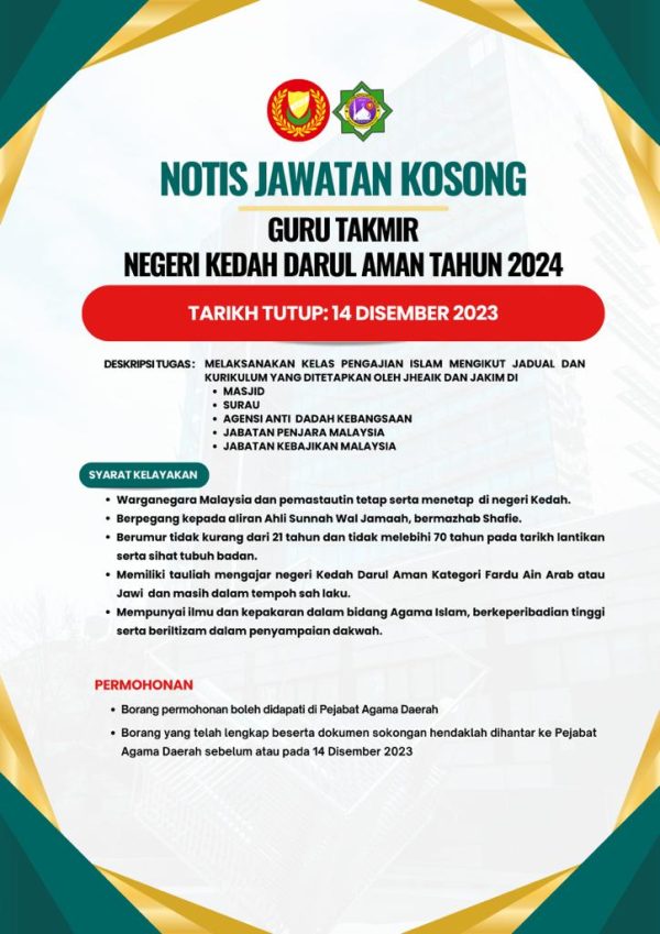 Iklan Terkini Jawatan Kosong Jabatan Hal Ehwal Agama Islam Negeri Kedah Like serta Ikut Facebook Kami, follow Chanel WhatsApp Jawatan Kosong & Telegram Portal SPA9 untuk capaian pantas kekosongan jawatan daripada kami sekarang.