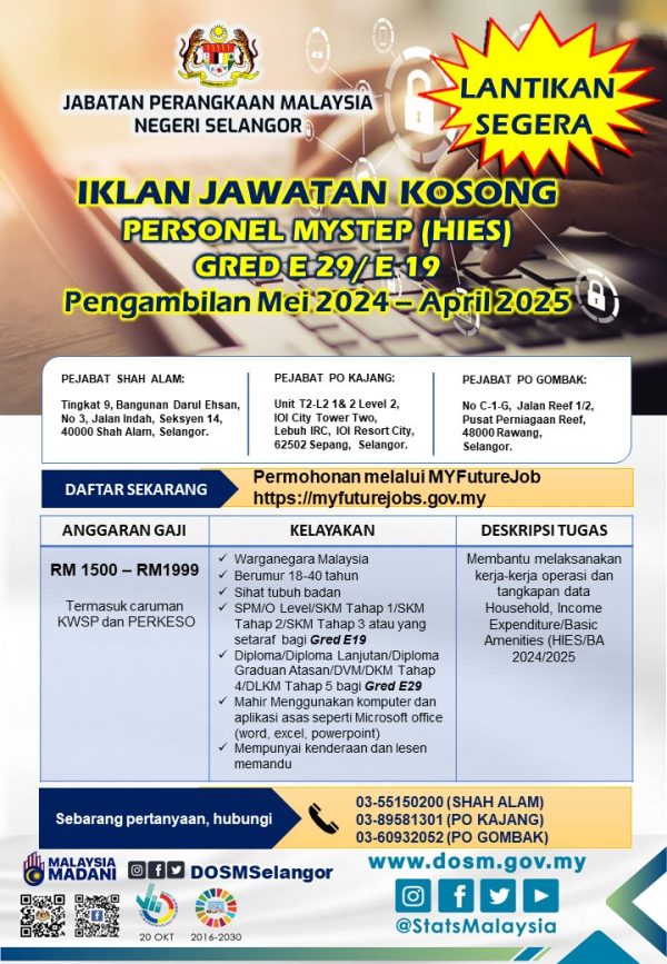 Iklan Terkini Jawatan Kosong Jabatan Perangkaan Malaysia Negeri Selangor Like serta Ikut Facebook Kami, follow Chanel WhatsApp Jawatan Kosong & Telegram Portal SPA9 untuk capaian pantas kekosongan jawatan daripada kami sekarang.