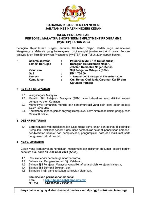 Iklan Terkini Jawatan Kosong Kementerian Kesihatan Malaysia Like serta Ikut Facebook Kami, follow Chanel WhatsApp Jawatan Kosong & Telegram Portal SPA9 untuk capaian pantas kekosongan jawatan daripada kami sekarang.