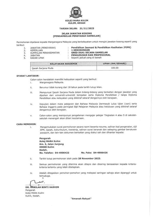 Iklan Terkini Jawatan Kosong Kolej Mara Kulim Like serta Ikut Facebook Kami, follow Chanel WhatsApp Jawatan Kosong & Telegram Portal SPA9 untuk capaian pantas kekosongan jawatan daripada kami sekarang.