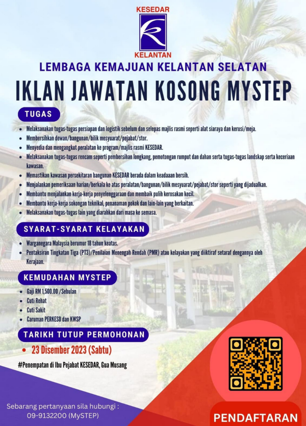 Iklan Terkini Jawatan Kosong Lembaga Kemajuan Kelantan Selatan (KESEDAR) Like serta Ikut Facebook Kami, follow Chanel WhatsApp Jawatan Kosong & Telegram Portal SPA9 untuk capaian pantas kekosongan jawatan daripada kami sekarang.