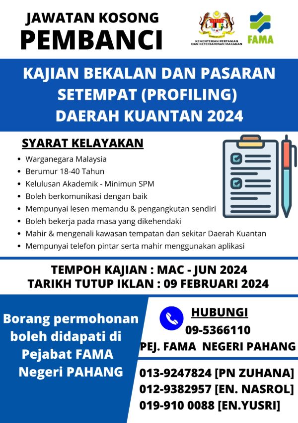 Iklan Terkini Jawatan Kosong Lembaga Pemasaran Pertanian Persekutuan (FAMA) Like serta Ikut Facebook Kami, follow Chanel WhatsApp Jawatan Kosong & Telegram Portal SPA9 untuk capaian pantas kekosongan jawatan daripada kami sekarang.