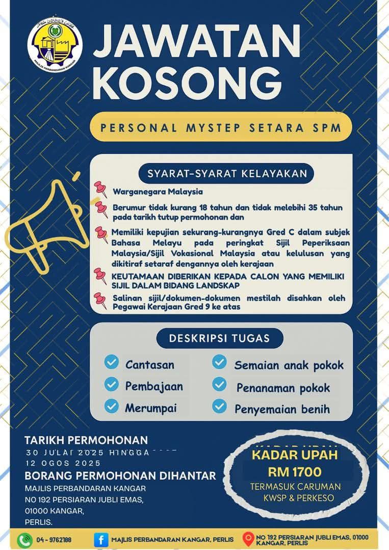 Iklan Terkini Jawatan Kosong Majlis Perbandaran Kangar (MPK) Like serta Ikut Facebook Kami, follow Chanel WhatsApp Jawatan Kosong & Telegram Portal SPA9 untuk capaian pantas kekosongan jawatan daripada kami sekarang.