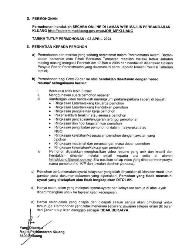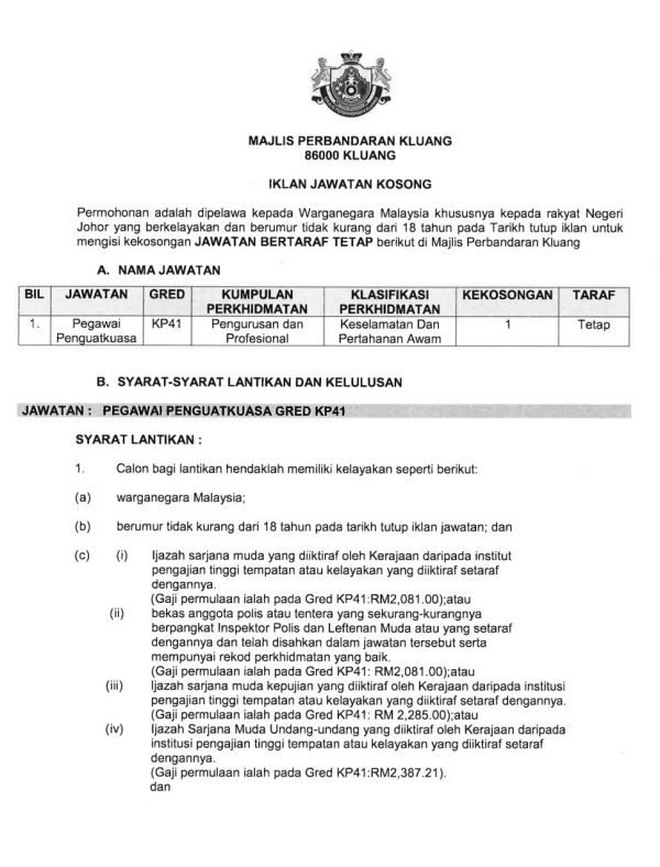 Iklan Terkini Jawatan Kosong Majlis Perbandaran Kluang (MPK) Like serta Ikut Facebook Kami, follow Chanel WhatsApp Jawatan Kosong & Telegram Portal SPA9 untuk capaian pantas kekosongan jawatan daripada kami sekarang. Klik Jawatan Disini