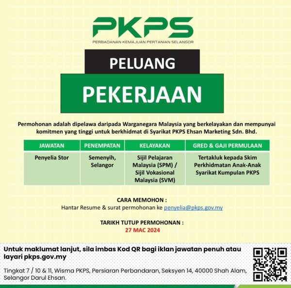 Iklan Terkini Jawatan Kosong Perbadanan Kemajuan Pertanian Selangor (PKPS)
