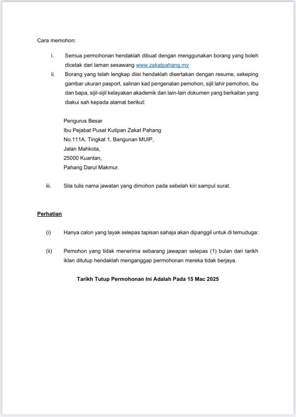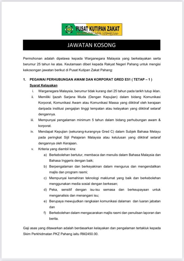 Iklan Terkini Jawatan Kosong Pusat Kutipan Zakat Pahang Like serta Ikut Facebook Kami, follow Chanel WhatsApp Jawatan Kosong & Telegram Portal SPA9 untuk capaian pantas kekosongan jawatan daripada kami sekarang. Klik Jawatan Disini