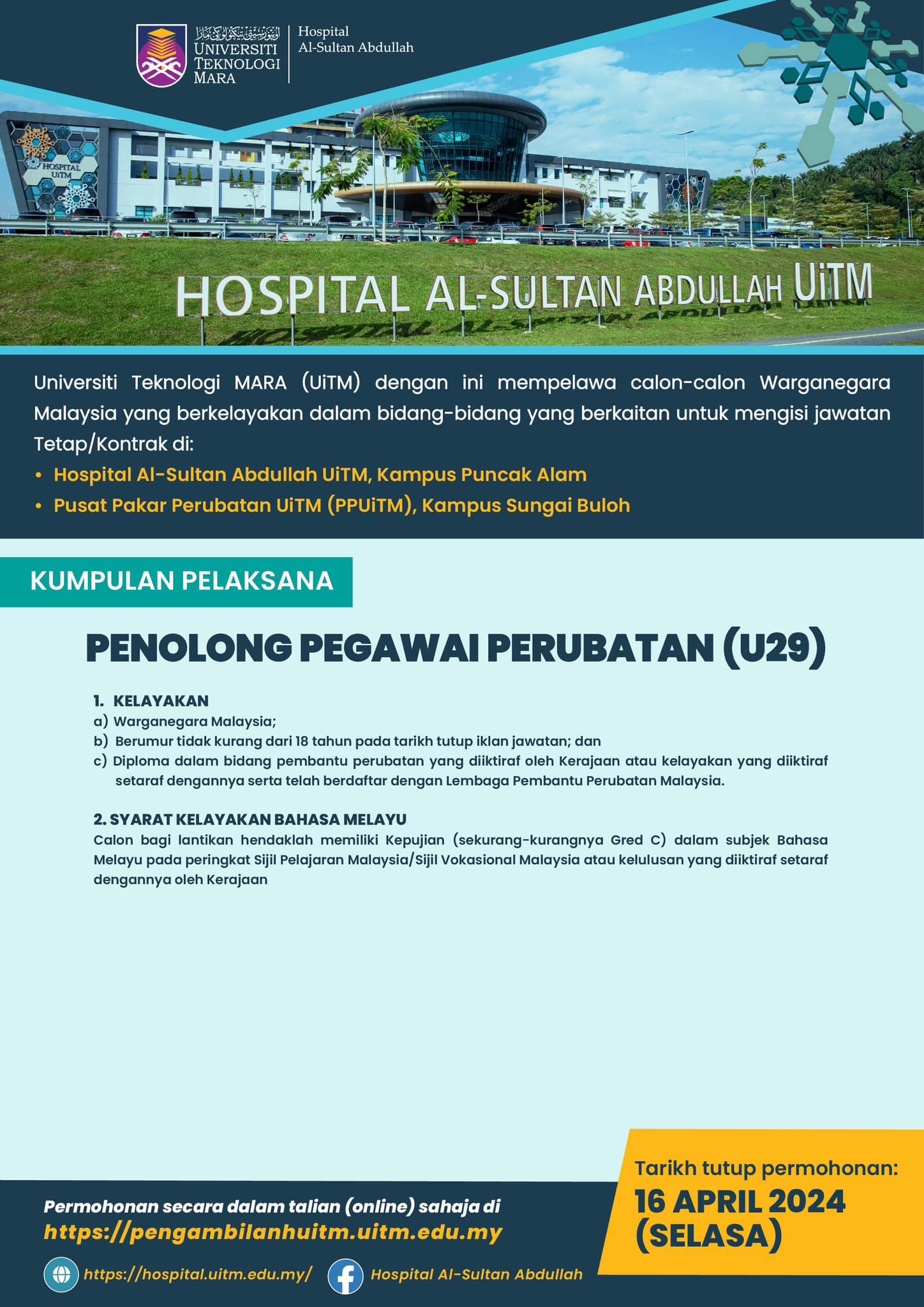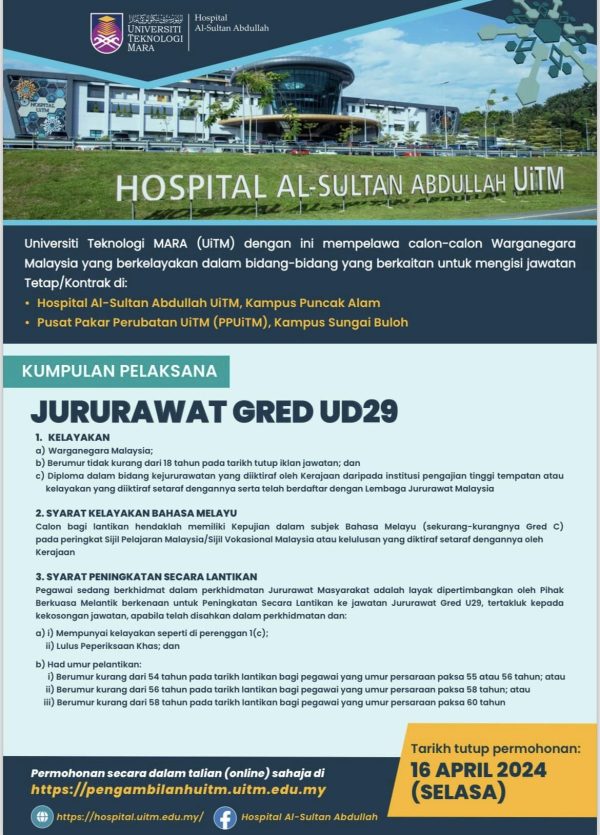 Iklan Terkini Jawatan Kosong Terkini di Universiti Teknologi MARA (UiTM) Like serta Ikut Facebook Kami, follow Chanel WhatsApp Jawatan Kosong & Telegram Portal SPA9 untuk capaian pantas kekosongan jawatan daripada kami sekarang.
