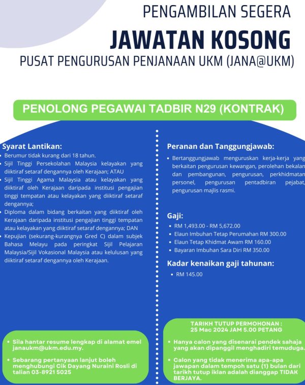Iklan Terkini Jawatan Kosong Terkini Universiti Kebangsaan Malaysia (UKM) Like serta Ikut Facebook Kami, follow Chanel WhatsApp Jawatan Kosong & Telegram Portal SPA9 untuk capaian pantas kekosongan jawatan daripada kami sekarang.