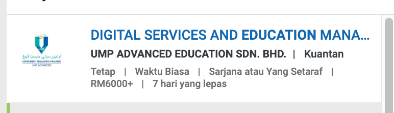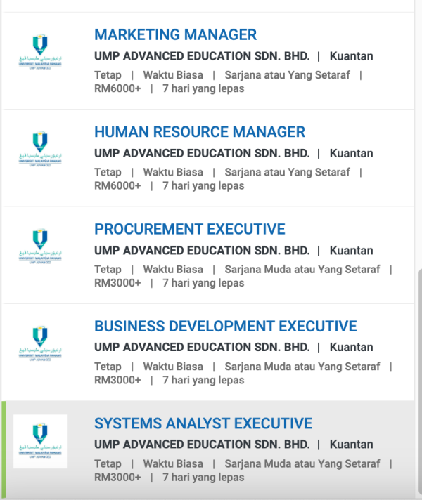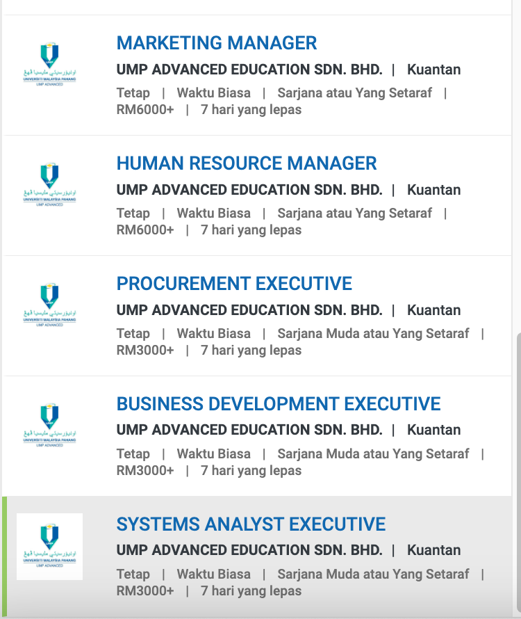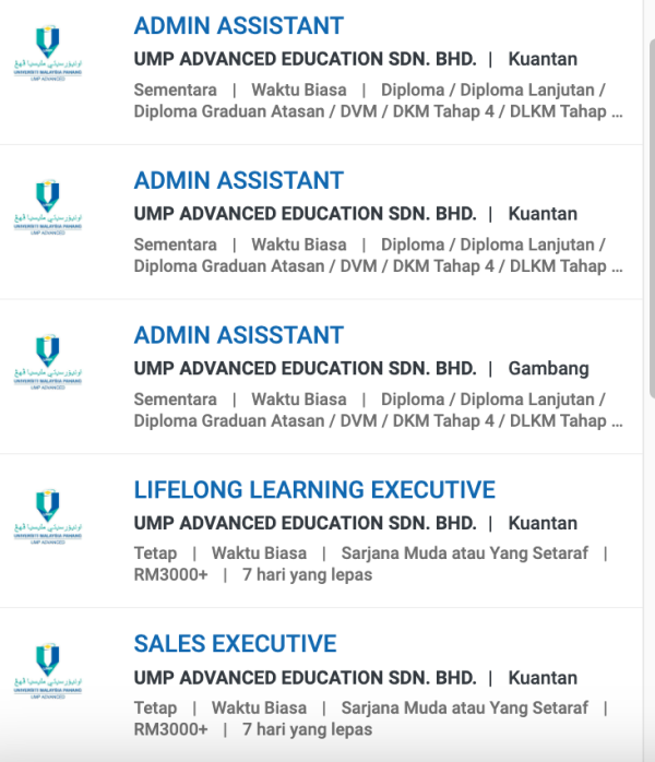 Iklan Terkini Jawatan Kosong UMP Advanced Education Sdn Bhd Like serta Ikut Facebook Kami, follow Chanel WhatsApp Jawatan Kosong & Telegram Portal SPA9 untuk capaian pantas kekosongan jawatan daripada kami sekarang.