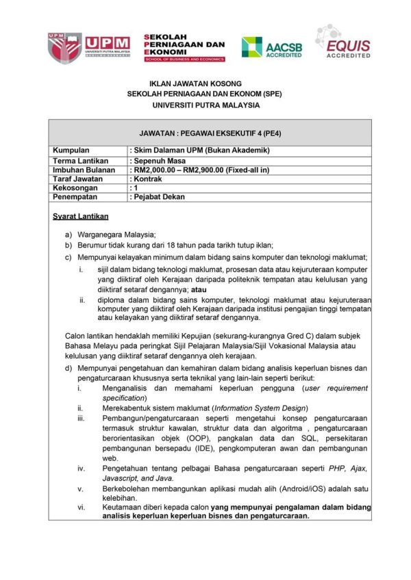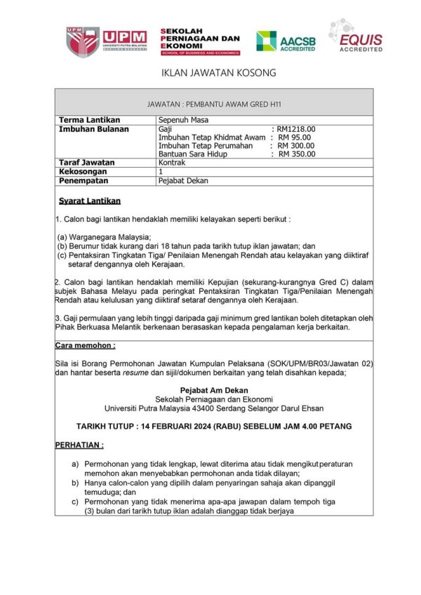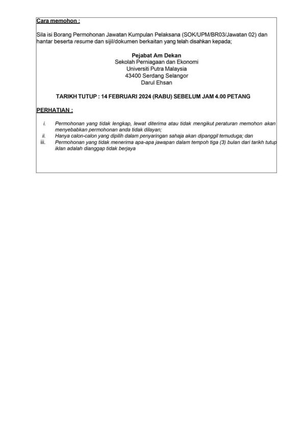 Iklan Terkini Jawatan Kosong Universiti Putra Malaysia (UPM) Like serta Ikut Facebook Kami, follow Chanel WhatsApp Jawatan Kosong & Telegram Portal SPA9 untuk capaian pantas kekosongan jawatan daripada kami sekarang.