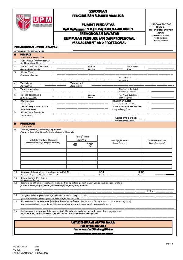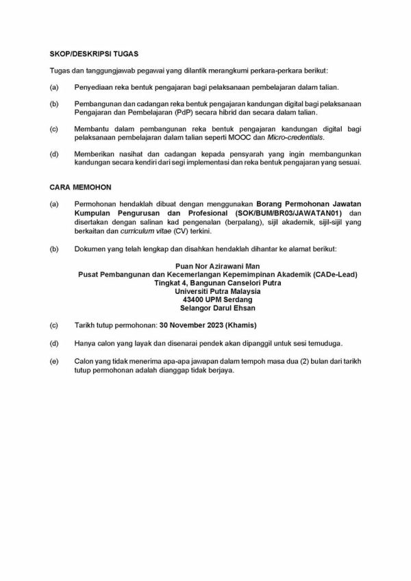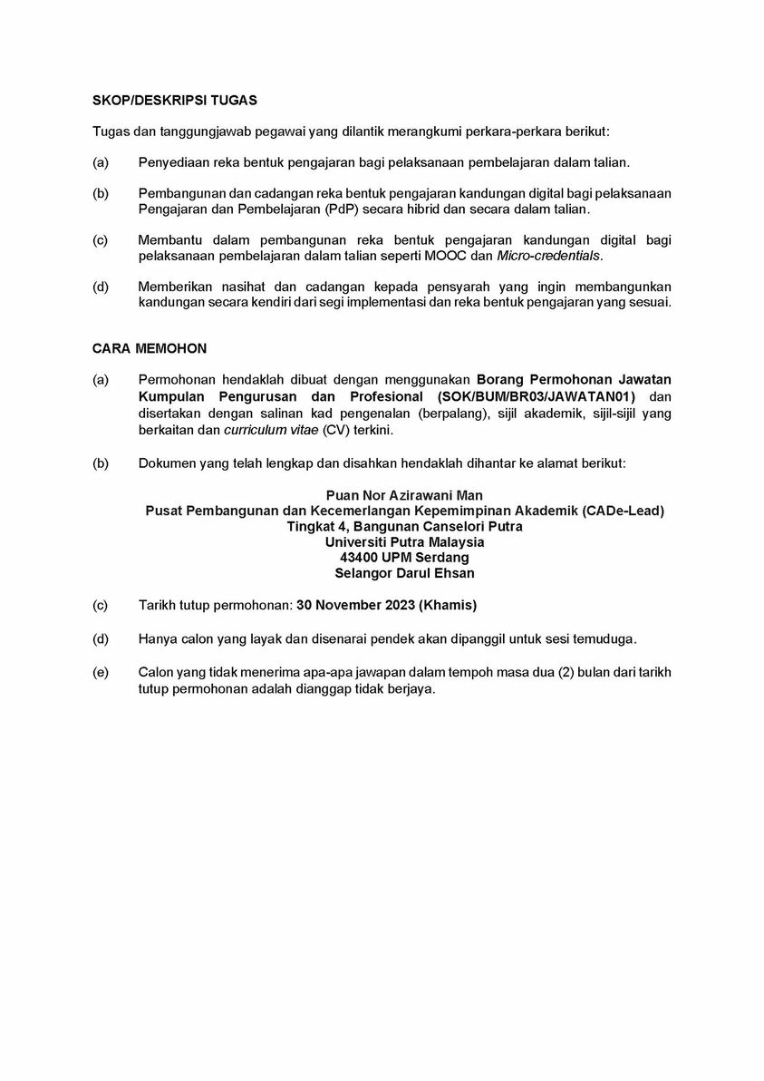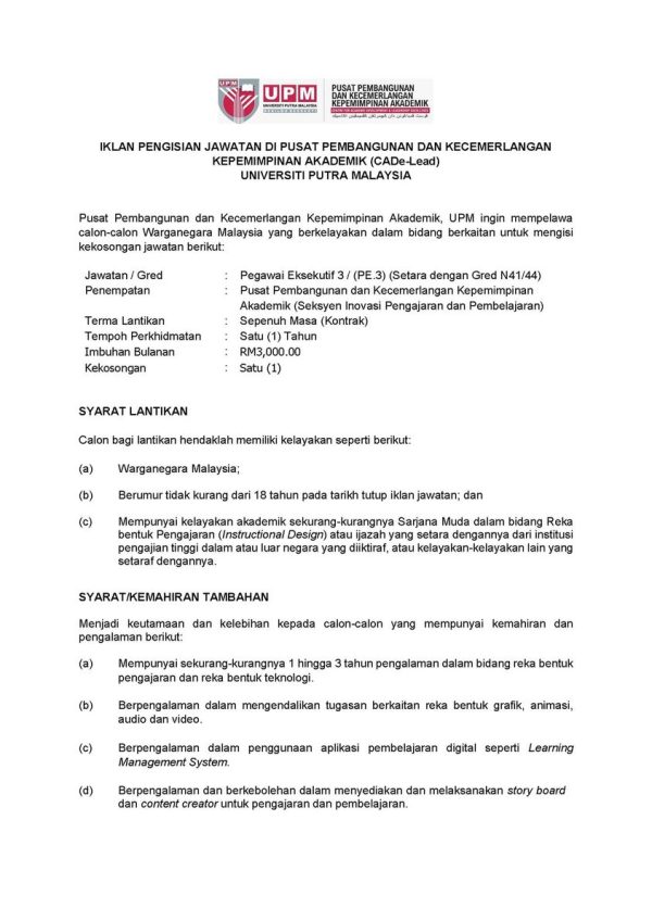 Iklan Terkini Jawatan Kosong Universiti Putra Malaysia (UPM) Like serta Ikut Facebook Kami, follow Chanel WhatsApp Jawatan Kosong & Telegram Portal SPA9 untuk capaian pantas kekosongan jawatan daripada kami sekarang.