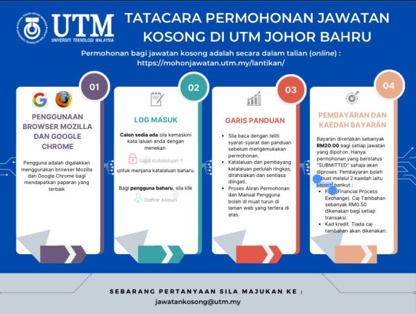 Iklan Terkini Jawatan Kosong Universiti Teknologi Malaysia (UTM) Like serta Ikut Facebook Kami, follow Chanel WhatsApp Jawatan Kosong & Telegram Portal SPA9 untuk capaian pantas kekosongan jawatan daripada kami sekarang. Klik Jawatan Disini