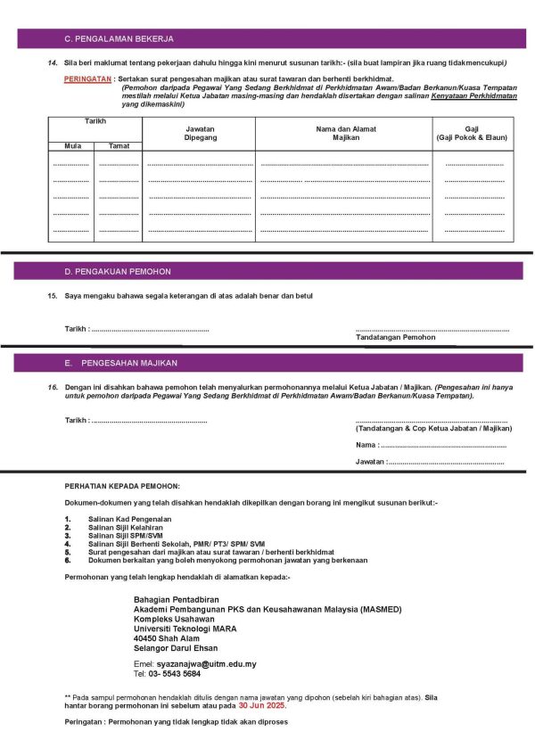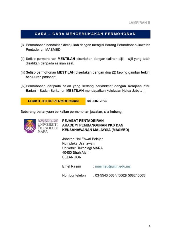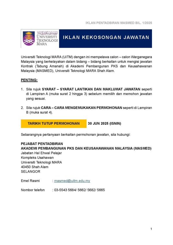 Iklan Terkini Jawatan Kosong Universiti Teknologi Mara (UiTM) Selangor Klik Jawatan Disini Like serta Ikut Facebook Kami, follow Chanel WhatsApp Jawatan Kosong & Telegram Portal SPA9 untuk capaian pantas kekosongan jawatan daripada kami sekarang.