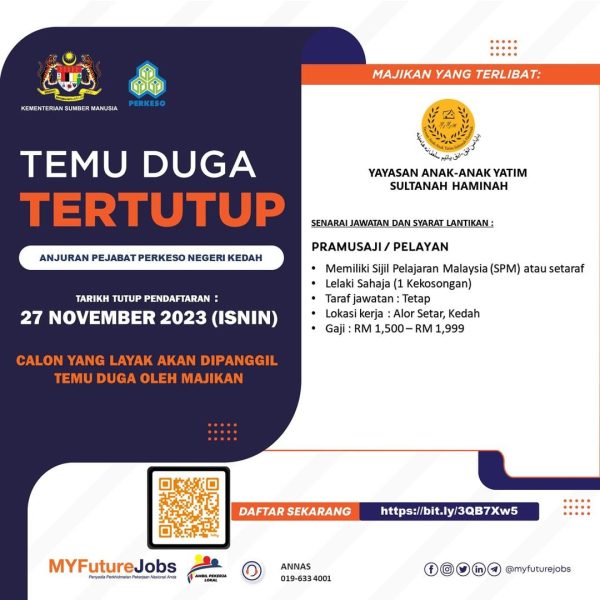 Iklan Terkini Jawatan Kosong Yayasan Anak-Anak Yatim Sultanah Haminah Like serta Ikut Facebook Kami, follow Chanel WhatsApp Jawatan Kosong & Telegram Portal SPA9 untuk capaian pantas kekosongan jawatan daripada kami sekarang. Klik Jawatan Disini