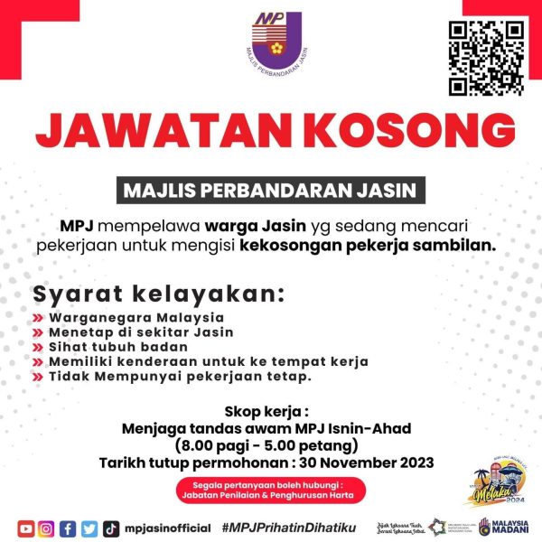 Iklan Terkini Jawatan Majlis Perbandaran Jasin Like serta Ikut Facebook Kami, follow Chanel WhatsApp Jawatan Kosong & Telegram Portal SPA9 untuk capaian pantas kekosongan jawatan daripada kami sekarang.