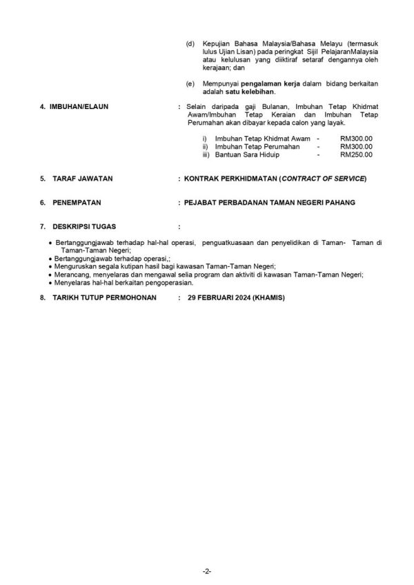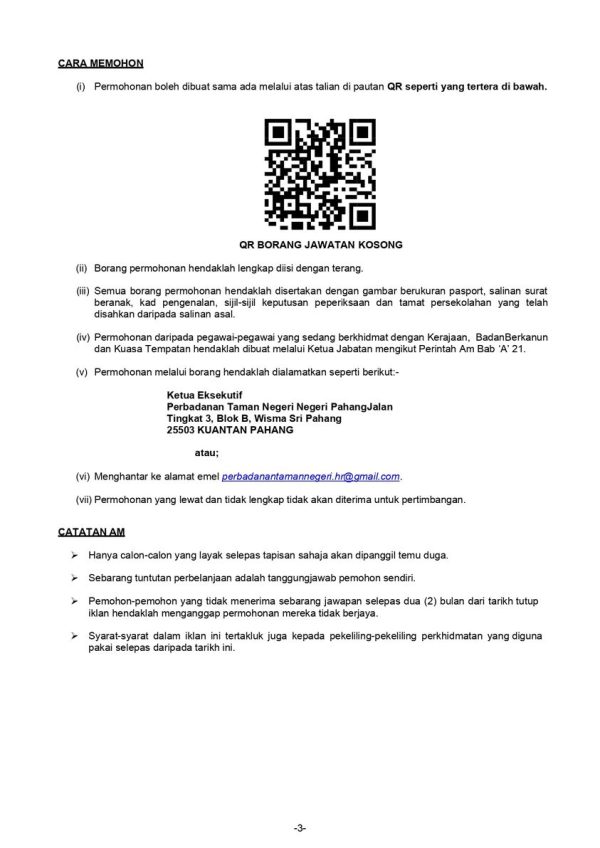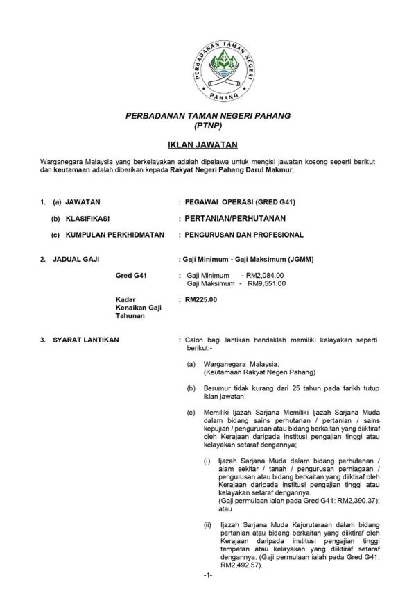 Iklan Terkini Jawatan Perbadanan Taman Negeri Pahang Like serta Ikut Facebook Kami, follow Chanel WhatsApp Jawatan Kosong & Telegram Portal SPA9 untuk capaian pantas kekosongan jawatan daripada kami sekarang.