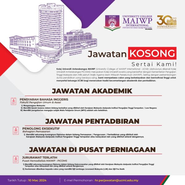 Iklan Terkini Kolej Universiti Antarabangsa MAIWP (UCMI) Like serta Ikut Facebook Kami, follow Chanel WhatsApp Jawatan Kosong & Telegram Portal SPA9 untuk capaian pantas kekosongan jawatan daripada kami sekarang.