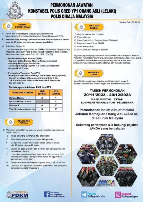 Iklan Terkini Polis DiRaja Malaysia (PDRM) Like serta Ikut Facebook Kami, follow Chanel WhatsApp Jawatan Kosong & Telegram Portal SPA9 untuk capaian pantas kekosongan jawatan daripada kami sekarang.
