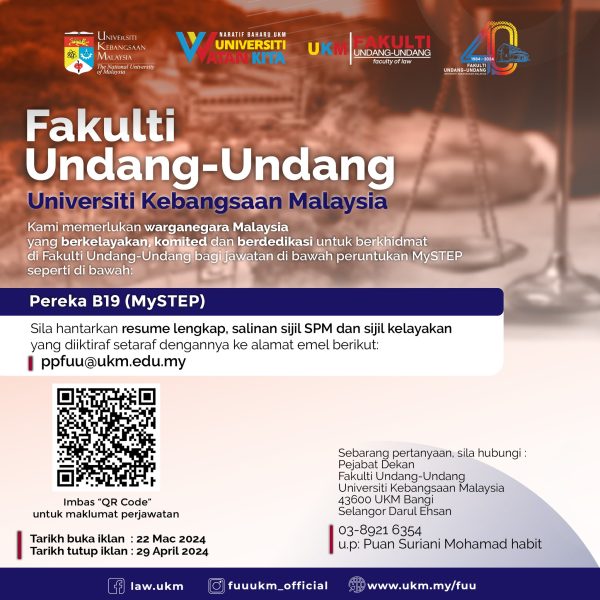 Iklan Terkini Universiti Kebangsaan Malaysia ~ Fakulti Undang-Undang Like serta Ikut Facebook Kami, follow Chanel WhatsApp Jawatan Kosong & Telegram Portal SPA9 untuk capaian pantas kekosongan jawatan daripada kami sekarang.