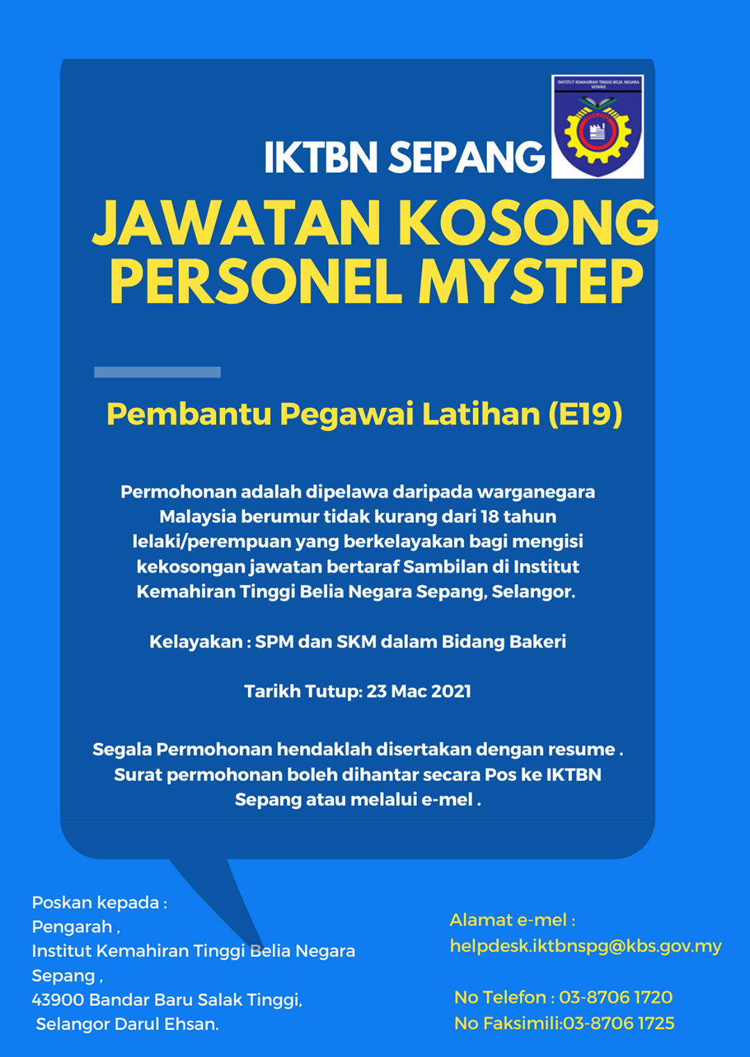 Jawatan Kosong Institut Kemahiran Tinggi Belia Negara Sepang Like serta Ikut Facebook Kami, follow Chanel WhatsApp Jawatan Kosong & Telegram Portal SPA9 untuk capaian pantas kekosongan jawatan daripada kami sekarang.