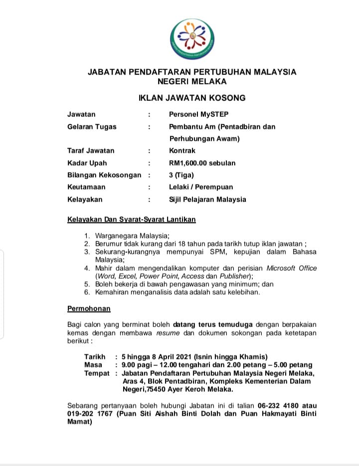 Jawatan Kosong Jabatan Pendaftaran Pertubuhan Malaysia
