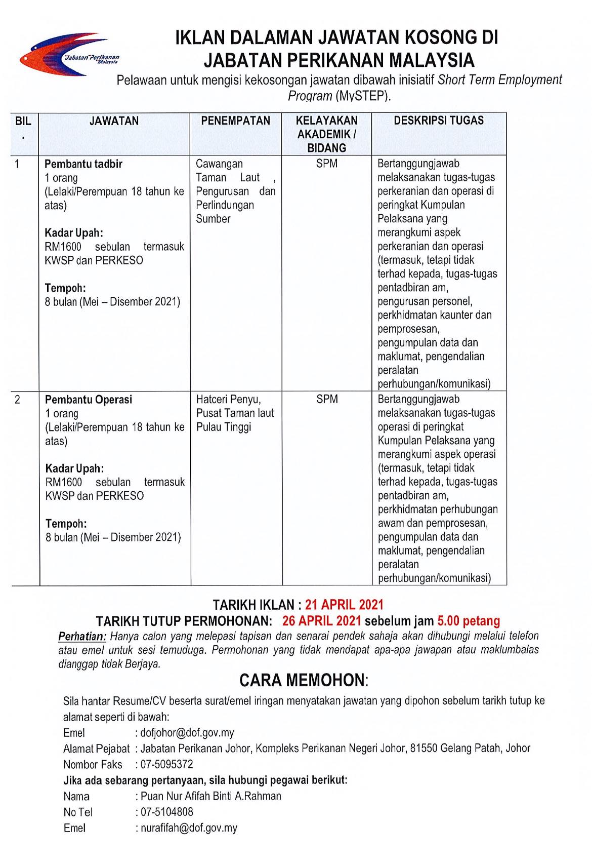 Jawatan Kosong Jabatan Perikanan Malaysia Like serta Ikut Facebook Kami, follow Chanel WhatsApp Jawatan Kosong & Telegram Portal SPA9 untuk capaian pantas kekosongan jawatan daripada kami sekarang.